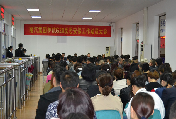 為切實(shí)加強(qiáng)集團(tuán)公司反恐安保防范的各項(xiàng)工作,4月14日晚,麗汽集團(tuán)護(hù)航G20反恐安保工作動(dòng)員會(huì)在客運(yùn)東站候車室召開。集團(tuán)公司總經(jīng)理薛和有、反恐支隊(duì)長(zhǎng)葉亞平、集團(tuán)公司安全保衛(wèi)稽查部經(jīng)理葉少華出席會(huì)議,東站全體人員、各運(yùn)輸單位領(lǐng)導(dǎo)班子及安全人員共200余人參加大會(huì)。會(huì)議由集團(tuán)公司總經(jīng)理助理葉劍飛主持。