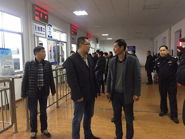 陳豪區(qū)長詳細(xì)詢問了東站春運(yùn)方案以及惡劣天氣下應(yīng)急預(yù)案制定情況。陳區(qū)長指出,東站要進(jìn)一步樹立服務(wù)群眾和春運(yùn)安全意識(shí);要抓好細(xì)節(jié),強(qiáng)化措施,確保春運(yùn)工作安全有序;要以人為本,增強(qiáng)服務(wù)意識(shí),確保旅客走的好,走的順;認(rèn)真排查安全隱患,確保旅客踏上平安回家旅途。