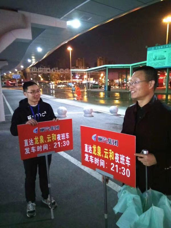 從前天(15日)開(kāi)始,麗水至云和、龍泉班線(xiàn)夜班車(chē)調(diào)整至21:30發(fā)車(chē)。為了讓更多旅客知道班車(chē)時(shí)刻及更好的引導(dǎo)旅客上車(chē),從當(dāng)天起長(zhǎng)途運(yùn)輸分公司組織干部員工在高鐵站出站口對(duì)出站的旅客進(jìn)行引導(dǎo),讓更多云和及龍泉的旅客坐上了放心車(chē)。
