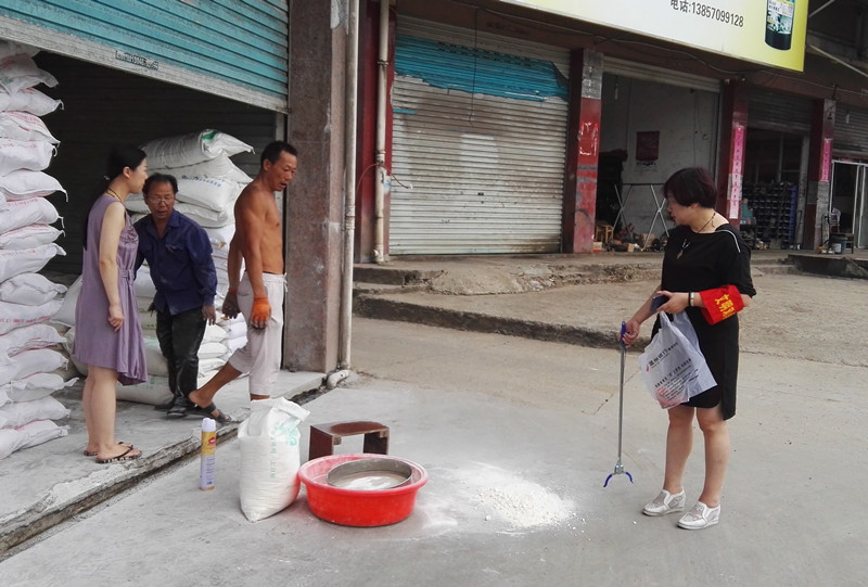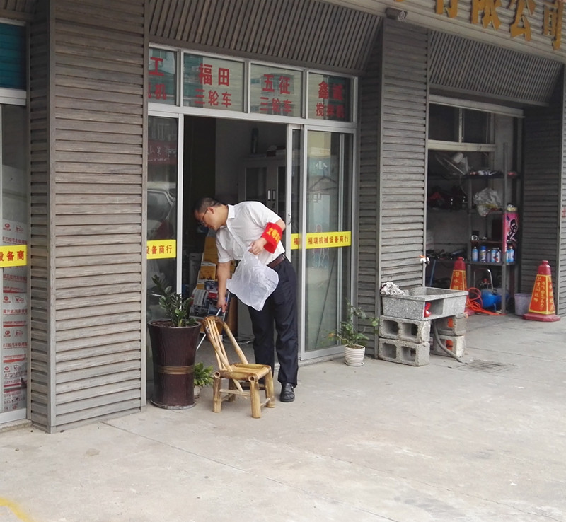 呂主席勸導(dǎo)商家保持門前環(huán)境,交談后,商家立即把門前衛(wèi)生打掃干凈,表示一定會(huì)做好門前三包工作。