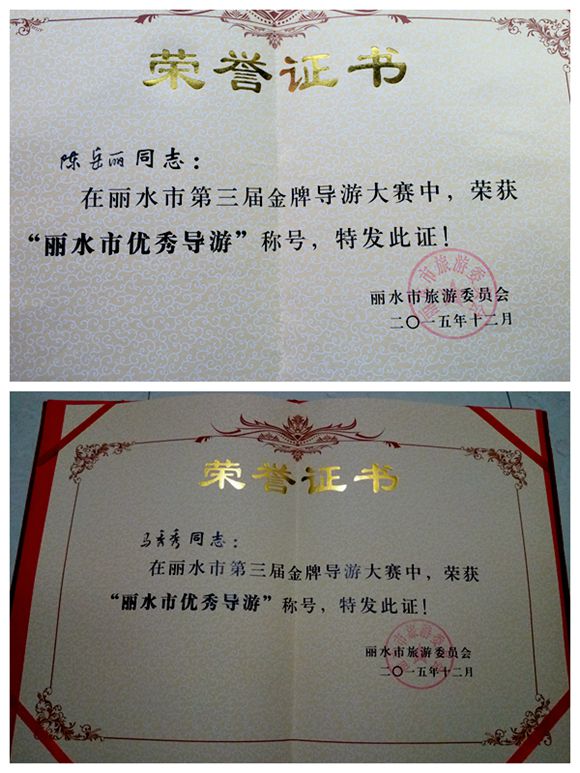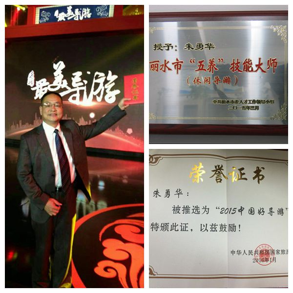2011年,麗水市旅游局舉辦了首屆金牌導(dǎo)游大賽,旅游集散中心推薦朱勇華參加,大賽與平時帶團講解是不一樣的,面對年輕靚麗、舞臺表現(xiàn)能力強、記憶力好的年輕對手,年過半百的他毫不示弱,朱勇華以其深厚歷史文化底子,精益求精的戲曲才藝表演,生動又有獨到見解的講解,勇奪麗水市首屆“金牌導(dǎo)游”榮譽稱號。