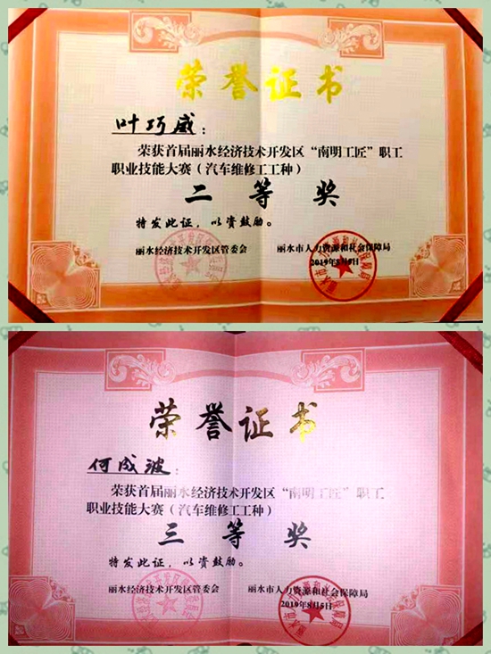 日前,首屆麗水經(jīng)濟(jì)技術(shù)開發(fā)區(qū)“南明工匠”職工職業(yè)技能大賽在麗水市職業(yè)高級(jí)中學(xué)落下帷幕,甌龍(翔)公司選派的兩名選手葉巧威、何成波,經(jīng)過激烈的角逐,分別獲得汽車維修工種比賽二等獎(jiǎng)、三等獎(jiǎng)的優(yōu)異成績。