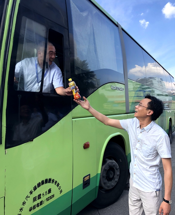 在黃泥山加油站,集團(tuán)公司黨委書(shū)記、董事長(zhǎng)葉茂將冰鎮(zhèn)綠茶送到加油工手中,感謝他們高溫下的堅(jiān)守,并關(guān)切地交待他們要注意高溫期間的防暑事項(xiàng)。在駕培訓(xùn)練場(chǎng)地、東站客運(yùn)站場(chǎng)等,集團(tuán)公司副總經(jīng)理林周穎、總經(jīng)理助理葉劍飛將一份份降暑飲品送到奮斗在崗位上的員工手中,并向他們致以親切的問(wèn)候。讓員工們充分感受到了炎炎夏日里的“清涼”,感受到了集團(tuán)公司領(lǐng)導(dǎo)的深切關(guān)愛(ài)和麗汽大家庭的溫暖。