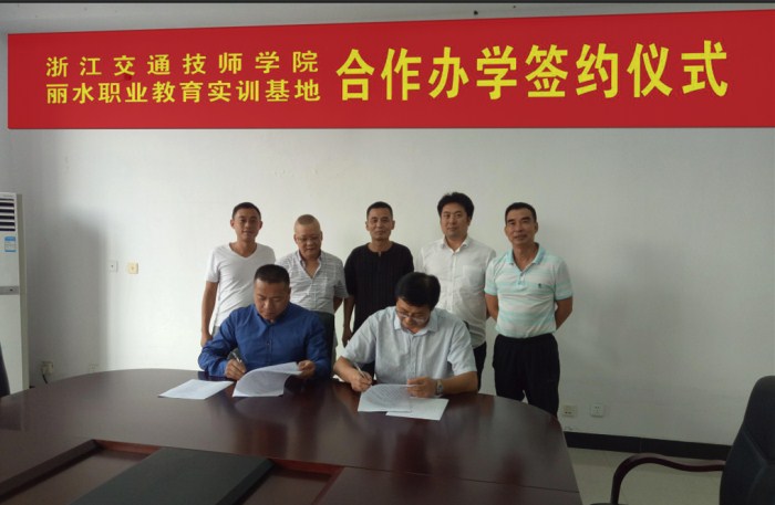 9月28日,實訓基地與浙江交通技師學院舉行了第三輪校校合作辦學簽約儀式。浙江交通技師學院黨委書記、院長李忠躍,麗水市職業(yè)教育實訓基地有限公司董事長王興平、總經(jīng)理麻向健等領導參加簽約儀式。