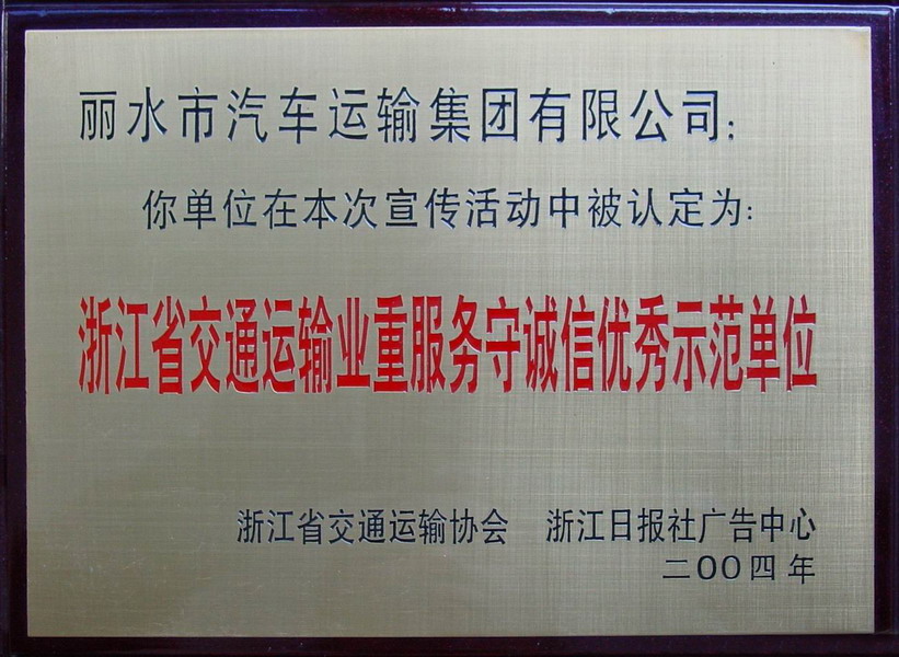 2004年浙江省交通運(yùn)輸業(yè)重服務(wù)守誠信優(yōu)秀示范單位