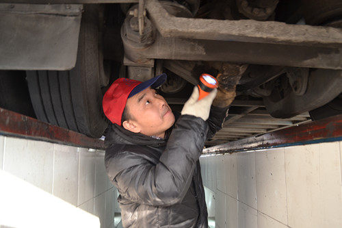 趁著他工作的間隙,我上前:“何師傅,一天下來要檢驗多少車子?”“大概130輛吧”。130輛,我細(xì)算了一下,檢驗一輛車子大概要5分鐘,就意味著門檢員每天要不停地工作11個小時,而每檢一輛車子都需要特別謹(jǐn)慎認(rèn)真的,車底上下大大小小的二十來個部件,即使是一顆螺帽都不能馬虎。例行檢查鉆到車底時,有時被尾氣嗆得連眼都睜不開;碰上雨雪天氣,被污泥臟水“洗臉”也是常有的事。