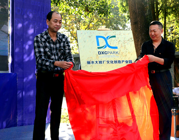 李建榮和楊擁軍共同為麗水大修廠文化創(chuàng)意產(chǎn)業(yè)園開園揭牌