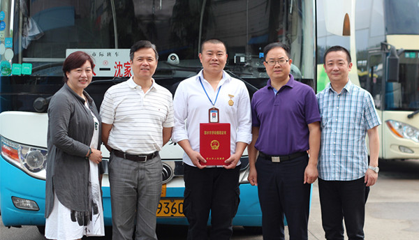 6月5日上午,麗水市總工會(huì)領(lǐng)導(dǎo)專程到麗汽集團(tuán)客長(zhǎng)運(yùn)分公司,給“最美司機(jī)”章雙林送來(lái)麗水市勞動(dòng)模范獎(jiǎng)?wù)潞妥C書。