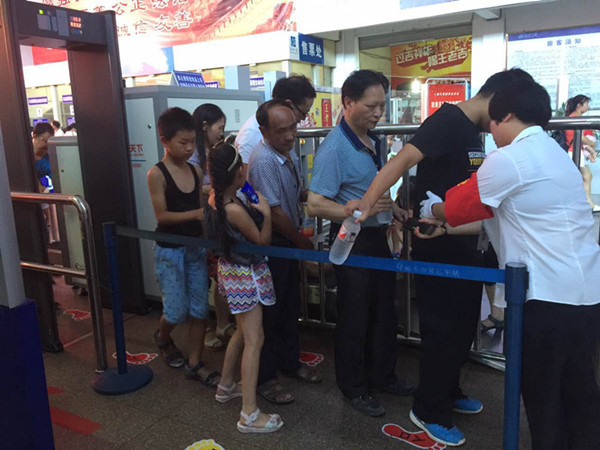 活動(dòng)第一天,佩戴志愿者紅袖章的同志已經(jīng)穿梭在車站的各個(gè)角落,熱情的為來往旅客服務(wù)。在售票大廳,為旅客介紹客車的運(yùn)行班次,引導(dǎo)幫助旅客使用自助售票機(jī)購票;在服務(wù)總臺(tái),為未帶身份證的旅客辦理信息登記工作;在安檢口,積極督導(dǎo)旅客進(jìn)行人物分離安檢,維持排隊(duì)秩序;在候車大廳,為旅客提供免費(fèi)防暑涼茶,宣傳客車服務(wù);在長(zhǎng)途班車檢票口,幫助不熟悉實(shí)名檢票的旅客順利檢票通過。
