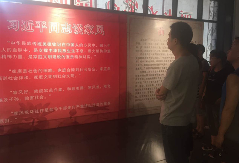 8月12日,東站黨支部組織黨員到市美術(shù)館參觀“麗水好家風(fēng)”展覽。通過對《先祖遺風(fēng)》、《傳世家風(fēng)》、《蔚然新風(fēng)》三大板塊的參觀學(xué)習(xí),黨員干部深深感受到古代先賢修身齊家的家國情懷、革命先輩言傳身教的崇高風(fēng)范、歷史名人恪守傳承的人生境界和普通百姓代代相傳的做人操守,深刻認(rèn)識到黨員干部的家風(fēng)連著黨風(fēng)、政風(fēng),是黨的優(yōu)良作風(fēng)在家庭層面的延伸和體現(xiàn)。