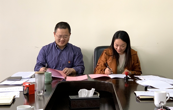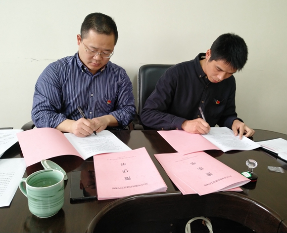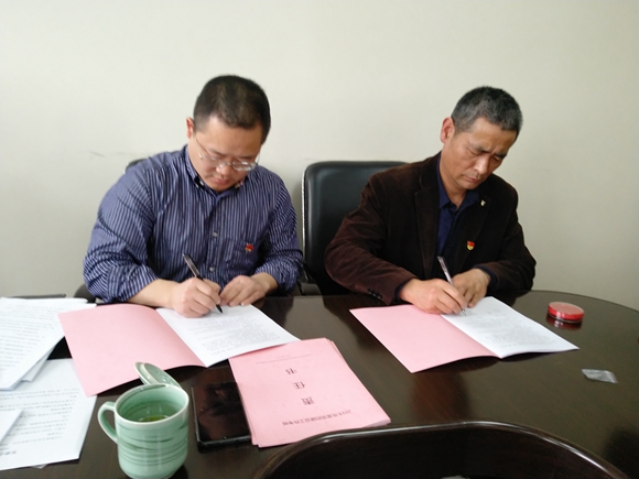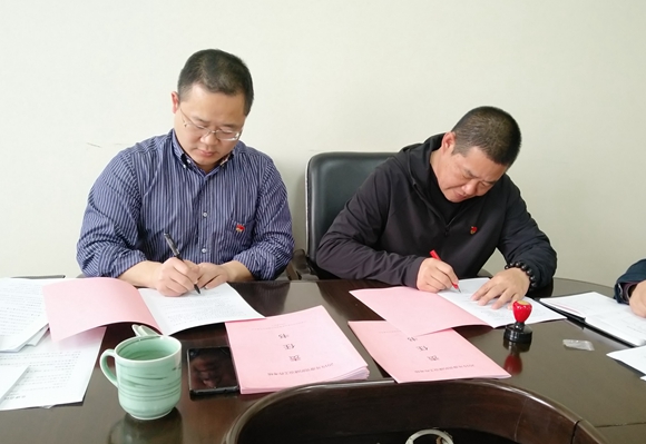 圖為集團公司黨委與黨辦及各黨支部簽訂《黨的建設(shè)工作考核責(zé)任書》