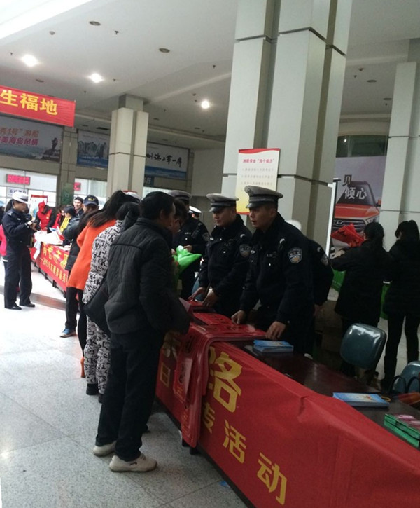 本次活動(dòng)由麗水市公安局交警支隊(duì)、麗水市公路管理局、金麗溫高速、高速交警麗水支隊(duì)、麗水市道路運(yùn)輸管理局、麗汽集團(tuán)等單位參加,并在西站現(xiàn)場(chǎng)設(shè)立了春運(yùn)服務(wù)點(diǎn)?;顒?dòng)現(xiàn)場(chǎng)熱鬧異常,咨詢的旅客也絡(luò)繹不絕,活動(dòng)單位向廣大旅客們發(fā)放了《珍愛(ài)生命、安全出行、拒絕黑車》、《文明交通安全宣傳手冊(cè)》等交通安全書籍和宣傳冊(cè)頁(yè),還為旅客們送上了年味十足的福字、對(duì)聯(lián)和使用性強(qiáng)的浙江省高速公路行車指南地圖作為新年小禮物,受到了廣大旅客的歡迎。